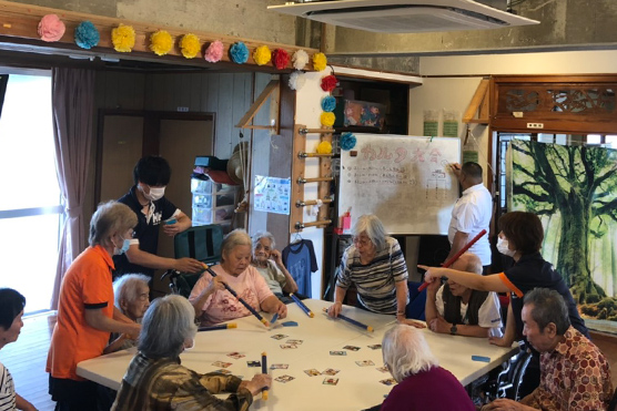 小規模で家庭的な雰囲気のデイサービスで生活機能向上の為の個別の機能訓練や入浴、バランスの とれた食事の提供を行っています。